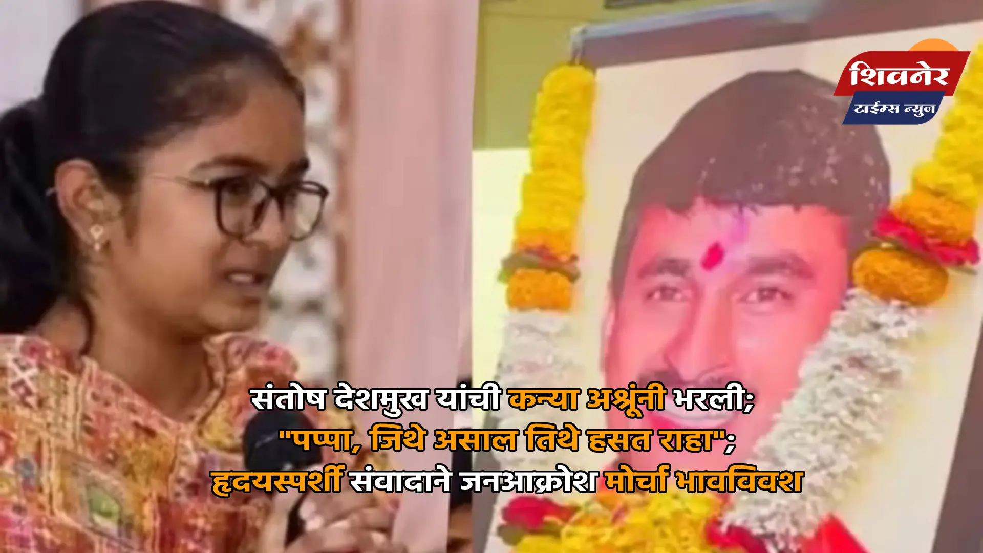 संतोष देशमुख यांची कन्या अश्रूंनी भरली; “पप्पा, जिथे असाल तिथे हसत राहा”; हृदयस्पर्शी संवादाने जनआक्रोश मोर्चा भावविवश