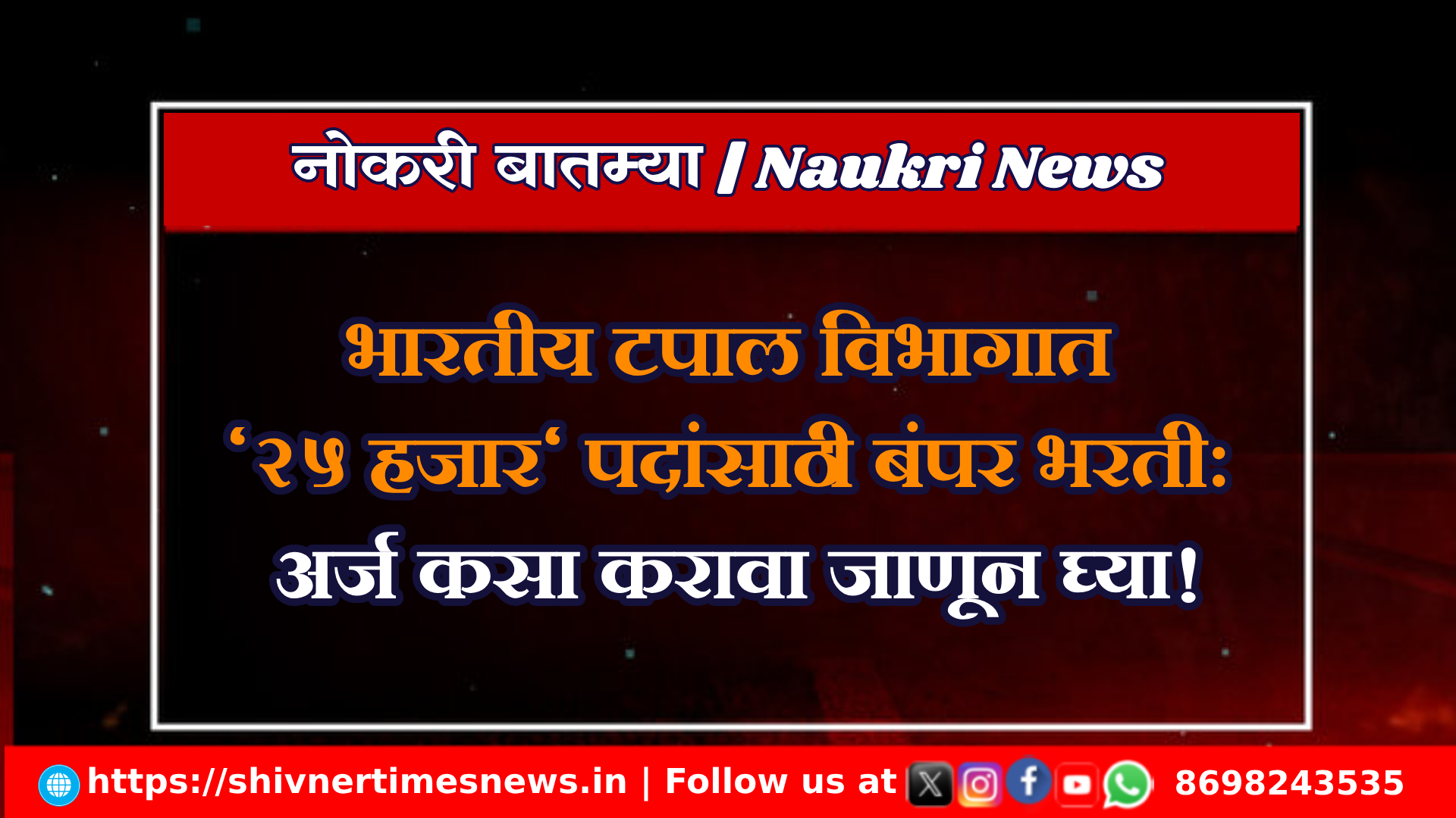 भारतीय टपाल विभागाच्या या भरतीमध्ये सहभागी होण्यासाठी अर्ज करा आणि आपले भविष्य उज्जवल करा.
