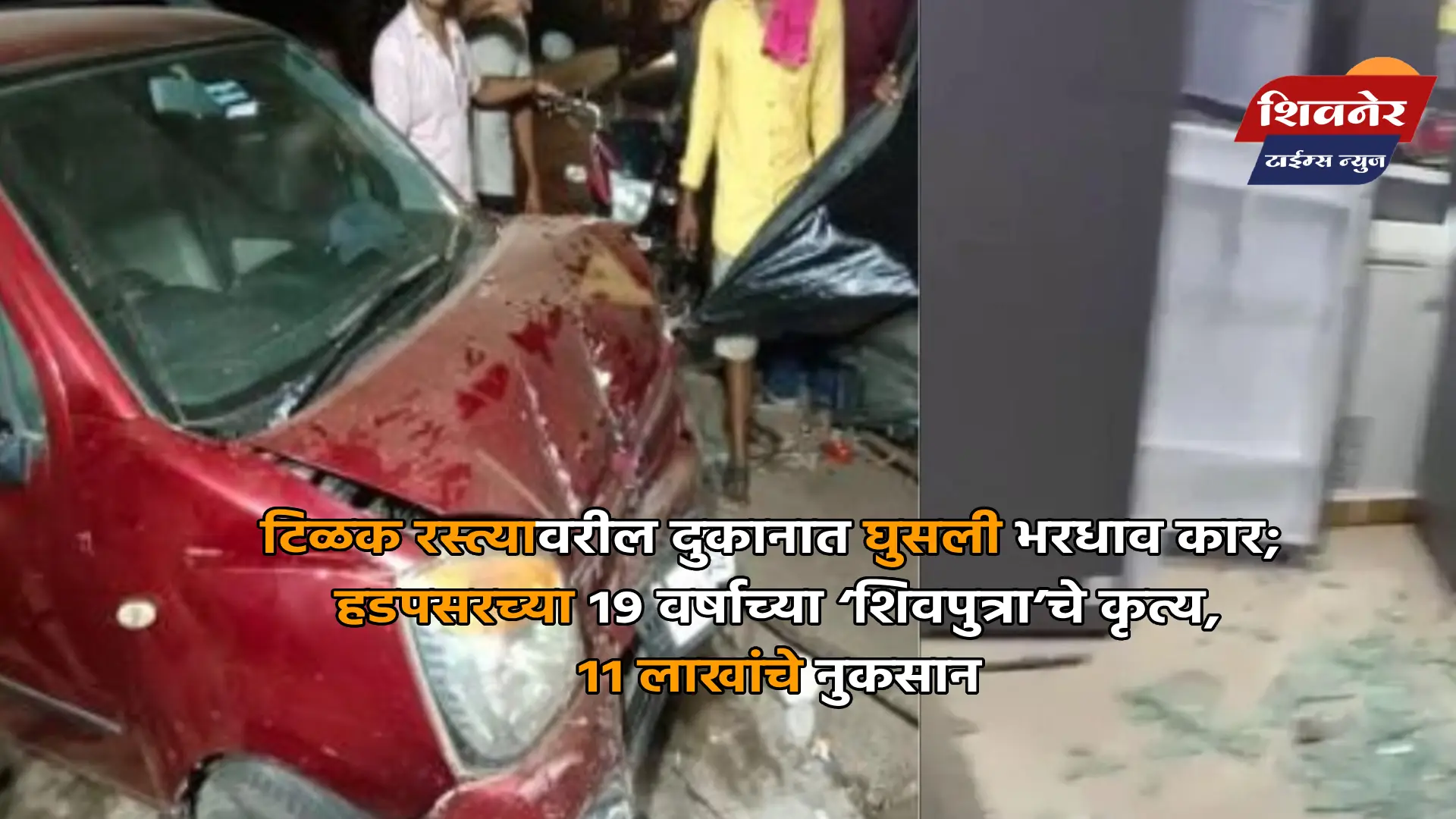 हडपसरच्या युवकाचा वेगवान कार अपघात; टिळक रोडवरील दुकानाचे ११ लाखांचे नुकसान; शिवपुत्रच्या कृत्यामुळे दुकानाचे प्रचंड नुकसान