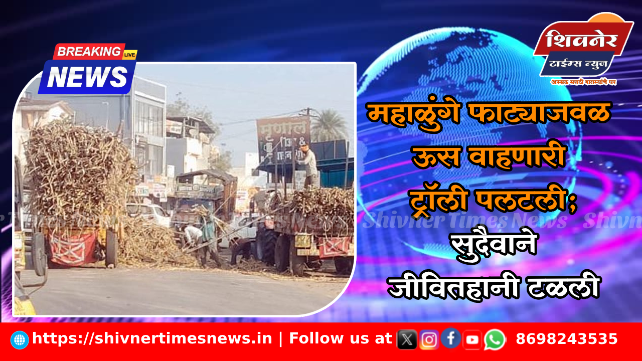 महाळुंगे फाट्याजवळ ऊस वाहणारी ट्रॉली पलटली; सुदैवाने जीवितहानी टळली