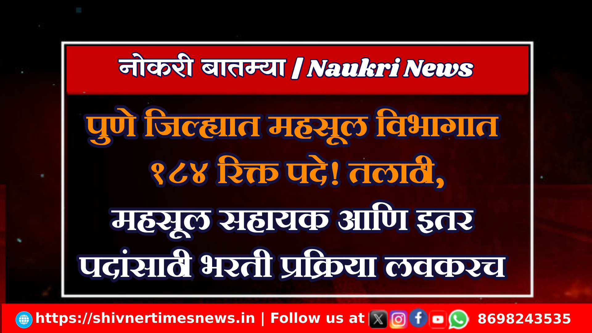 पुणे जिल्ह्यात महसूल विभागात 184 रिक्त पदे! तलाठी, महसूल सहायक आणि इतर पदांसाठी भरती प्रक्रिया लवकरच