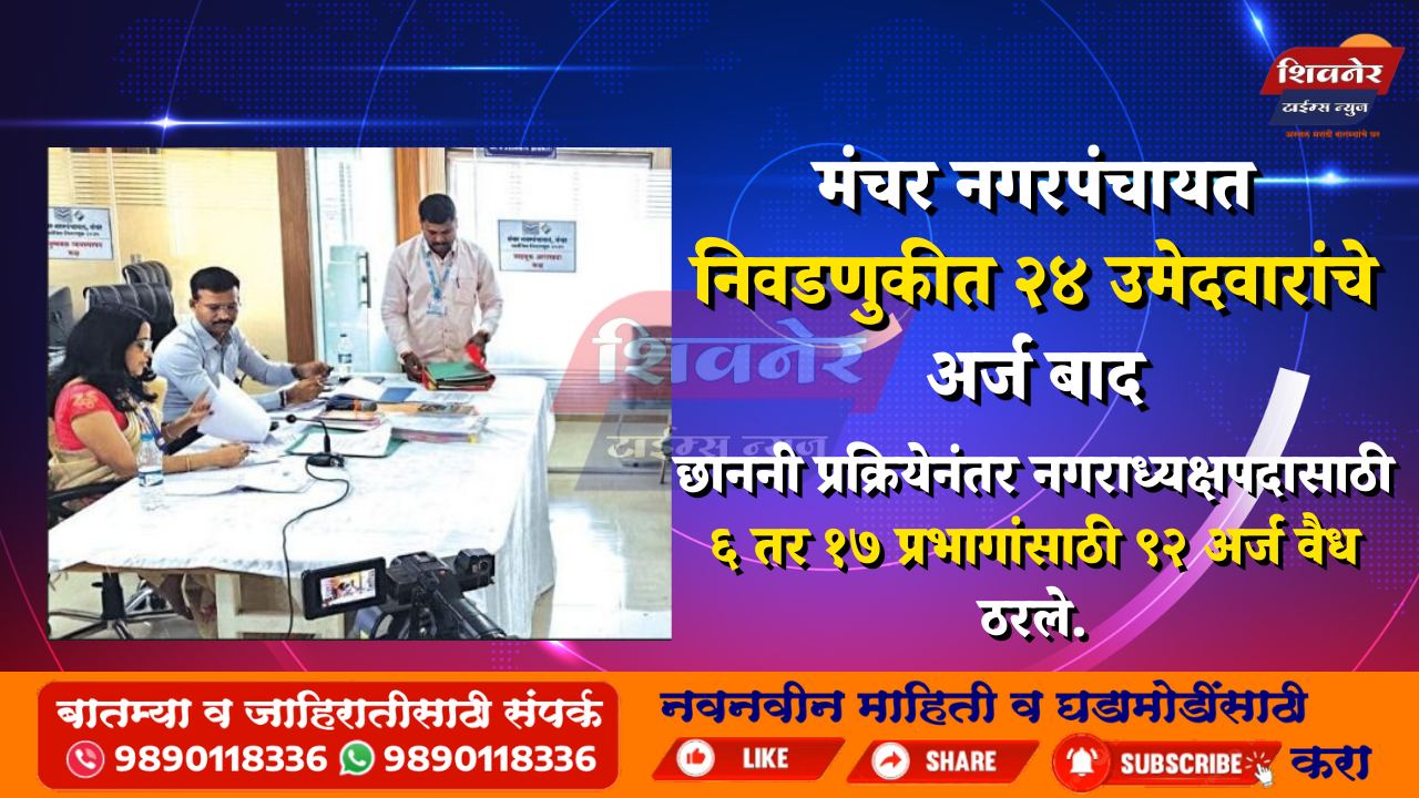 मंचर नगरपंचायत निवडणुकीच्या छाननीत २४ उमेदवारांचे अर्ज बाद.