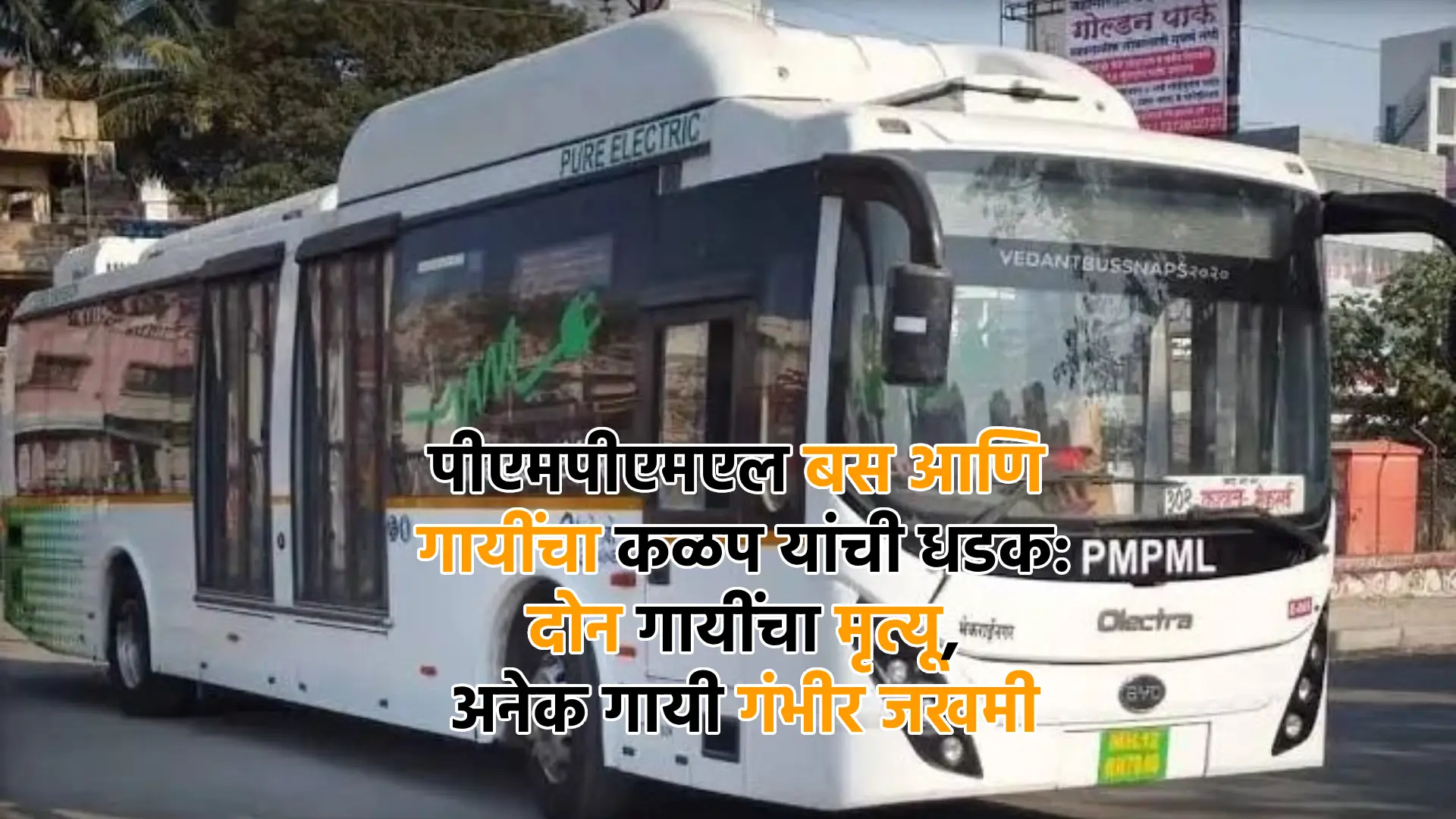 पीएमपीएमएल बस आणि गायींचा कळप यांची धडक: दोन गायींचा मृत्यू, अनेक गायी गंभीर जखमी