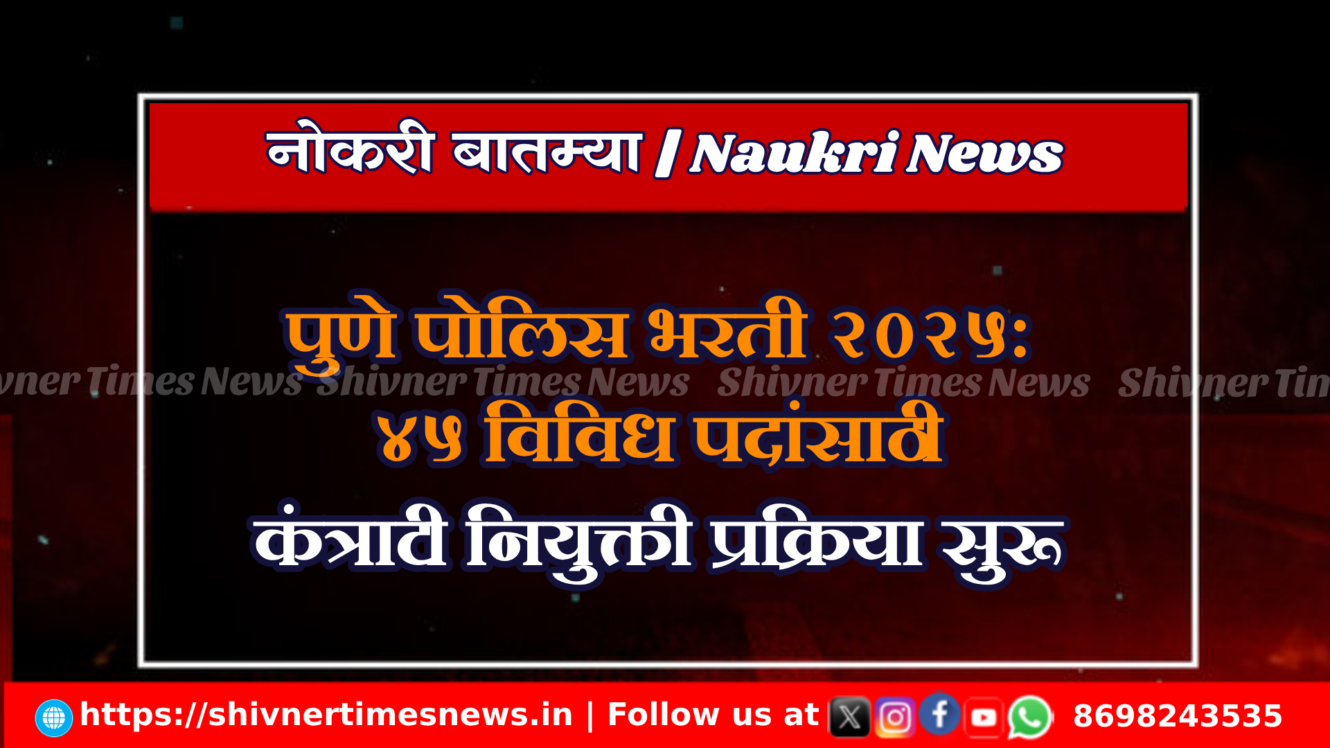 पुणे पोलिस भरती २०२५: ४५ विविध पदांसाठी कंत्राटी नियुक्ती प्रक्रिया सुरू