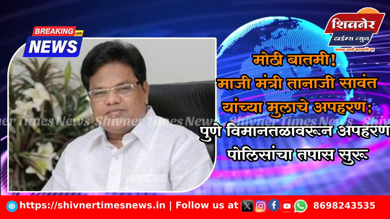 मोठी बातमी! माजी मंत्री तानाजी सावंत यांच्या मुलाचे अपहरण; पुणे विमानतळावरून अपहरण, पोलिसांचा तपास सुरू
